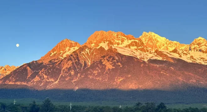🌸 玉龍雪山,一十三座山峰相連,像龍一樣盤臥,終年積雪不化。可搭乘冰川索道登上4680公尺的頂峰。